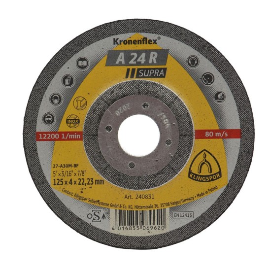 Disc polizare Klingspor A24R Supra 125x4x22.23mm, 240831