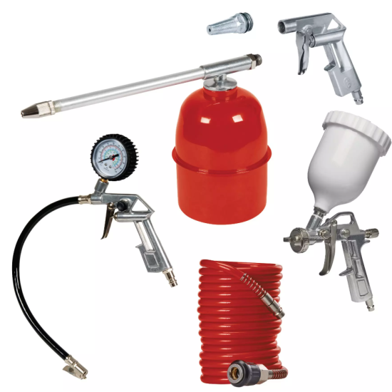 Setul profesional de unelte pneumatice Einhell, 5 piese este soluția ideală atât pentru utilizatorii profesioniști, cât și pentru pasionații de bricolaj. Compatibil cu toate compresoarele standard cu presiune de lucru de până la 8 bari, acest kit complet oferă tot ce ai nevoie pentru lucrări de curățare, vopsire și întreținere în atelier, garaj sau gospodărie.