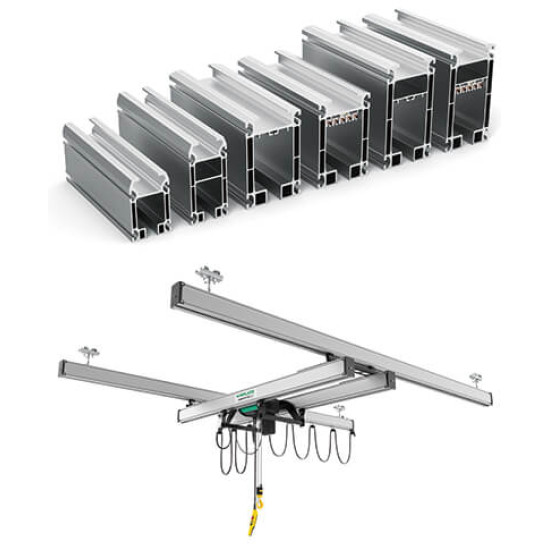 Sistemul poate fi utilizat pentru realizarea de monoraiuri, grinzi suspendate si poduri rulante usoare, fiind o solutie eficienta pentru posturi de lucru, linii de productie si zone de asamblare. Profilul din aluminiu asigura o deplasare lina si silentioasa, iar configurarea modulara permite adaptarea sistemului in functie de spatiul disponibil si de cerintele aplicatiei.
