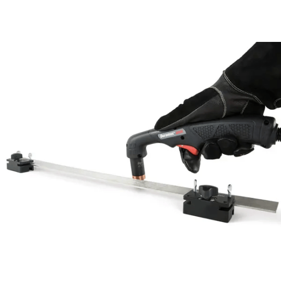 Ghidul de tăiere magnetic Hypertherm dispune de o riglă dreaptă de 60 cm (24 inch) și 2 blocuri magnetice cu comutatoare pornit/oprit. Blocurile pot fi utilizate și pentru a fixa propriul ghid de tăiere sau șablon personalizat.