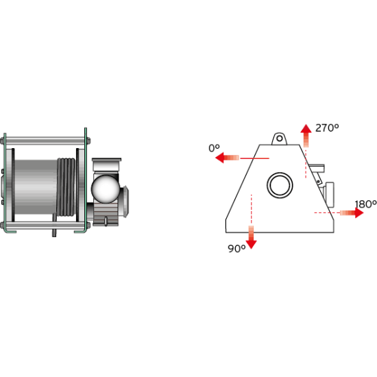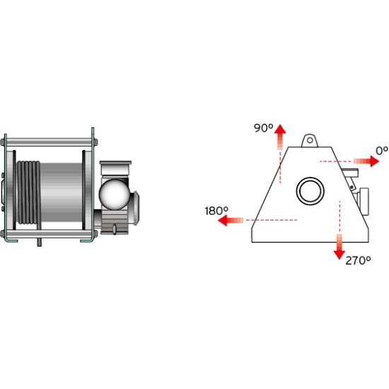 Un cadru metalic cu design modular si deschis, permitand multiple directii de iesire a cablurilor din tambur